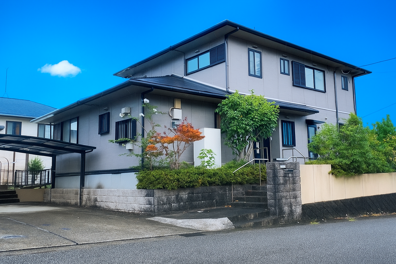 当施設は住宅街の中にあり、敷地内には屋根付きの駐車スペースもございます。場所がわかりにくい場合は事前に来訪のご予約をいただいた上で、国道269号天満バイパス沿いにある『WASHハウス花山手店』様から路地を入った場所にある『大坪1号街区公園』付近にてお待ちください。職員がお迎えにうかがいます。